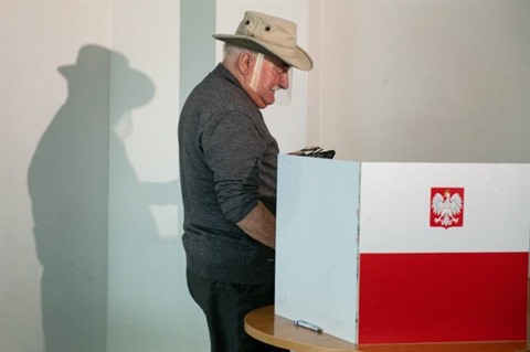 | L'ancien président de la Pologne, Lech Walesa, vote à Gdansk lors du 2e tour de l'élection présidentielle, le 12 juillet. |
