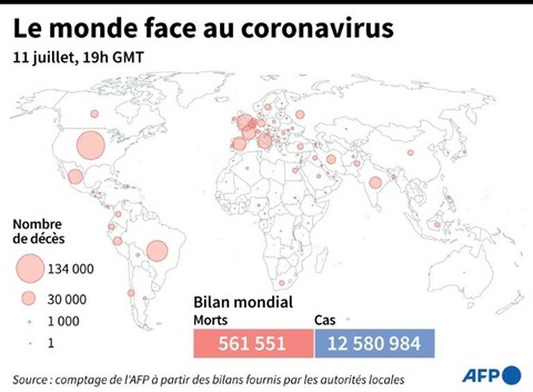 Depuis son apparition en décembre en Chine, le COVID-19 a tué plus de 565.000 personnes à travers le monde et en a contaminé 12,7 millions.
