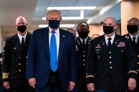 "Lorsque vous parlez avec des soldats qui sortent tout juste de la table d'opération, c'est très bien de porter un masque", a justifié M. Trump qui avait jusque là soigneusement évité de s'afficher avec un masque. "Je n'ai jamais été contre les masques, mais je suis convaincu que cela dépend du moment et de l'endroit".