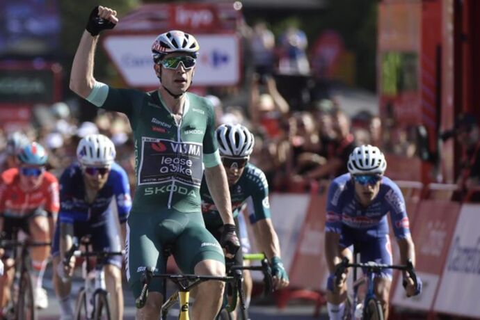 Présent dans plusieurs échappées depuis le début de cette 79e édition de la Vuelta, le coureur de 23 ans, dont c'est la première victoire sur le circuit World Tour, a saisi sa chance au pied de la dernière ascension pour aller s'imposer en solitaire.