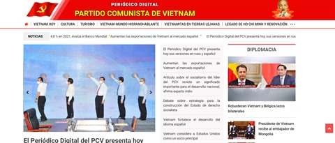 | Interface du Journal en ligne du Parti communiste du Vietnam en espagnol. |