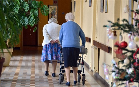 | Deux femmes marchent dans un couloir de leur maison de retraite, le 24 décembre 2014 à Nantes. |