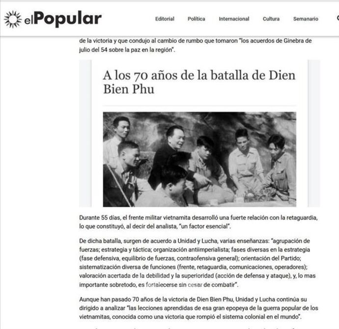 >> Victoire de Diên Biên Phu : un journal uruguayen apprécie l'héroïsme du peuple vietnamien