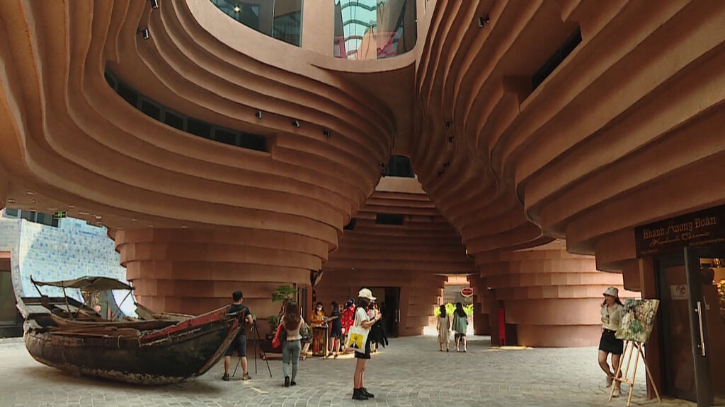 | Les touristes visitent le Centre de la quintessence du village artisanal vietnamien, situé dans le village de Bat Tràng, en banlieue de Hanoï. |