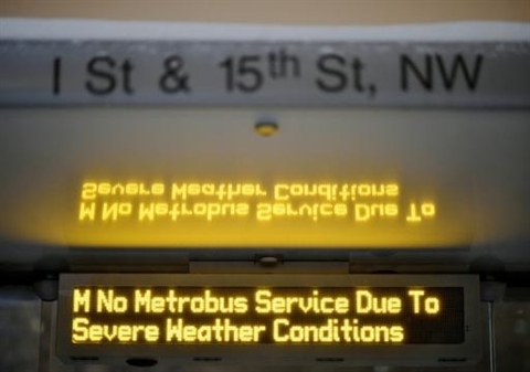 | Annonce de l'interruption des bus sur un tableau électronique le 22 janvier à Washington. |