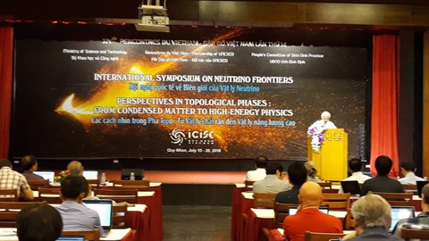 | Ouverture du symposium international sur les neutrinos et le colloque international "Perspectives dans les phases topologiques: de la matière condensée à la physique des hautes énergies", le 16 juillet à Quy Nhon. |