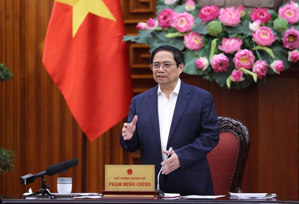 | Le Premier ministre Pham Minh Chinh prend la parole lors de la réunion, le 25 avril. |