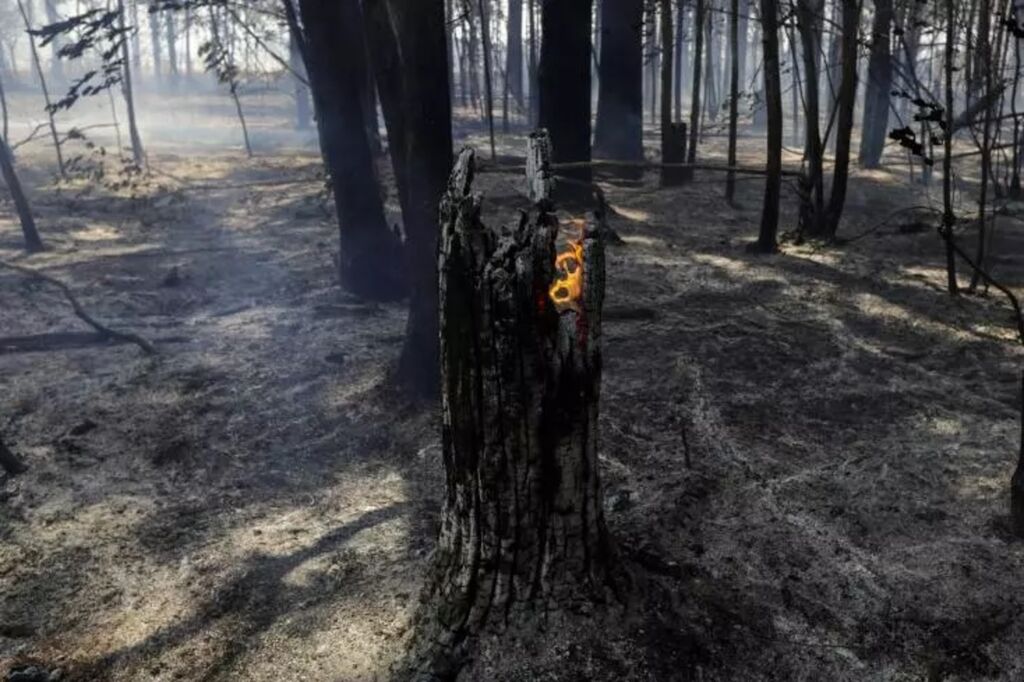 | Des arbres brûlés le 4 septembre 2024 après un incendie dans la Forêt nationale de Brasilia, au Brésil, pays touché par une sécheresse historique. |