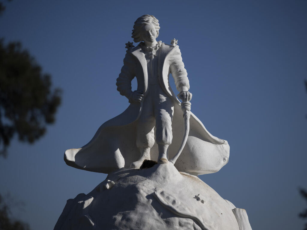 La sculpture du Petit Prince debout sur son astéroïde, de l’artiste argentine Amanda Mayor, trône dans le parc surplombant le fleuve Uruguay depuis 1997.