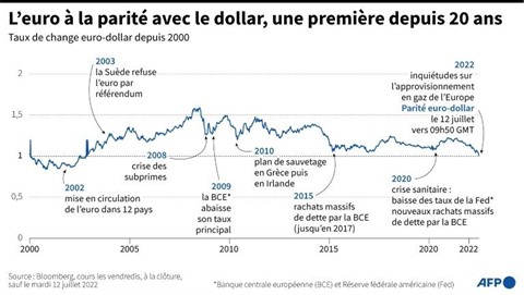 "Les investisseurs peinent à franchir le cap symbolique de la parité" et à faire tomber l'euro sous ce niveau, estime Walid Koudmani, analyste chez XTB. "Ce rythme lent prouve qu'il s'agit d'un mouvement dans la durée de vente de l'euro et d'achat du dollar, et pas une manipulation du marché", ajoute M. Razaqzada.