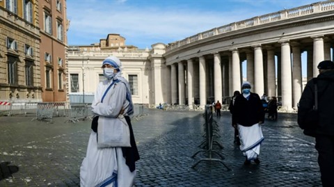 | Des religieuses de la congrégation des Missionnaires de la charité sur la place Saint-Pierre au Vatican, le 13 octobre. |