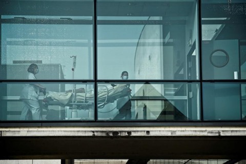 | Un malade transféré à l'hôpital de Tours, dans le centre-ouest de la France, le 2 avril. |
