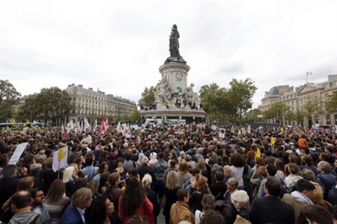 | Rassemblement à Paris Place de la République en faveur des migrants le 5 septembre. |