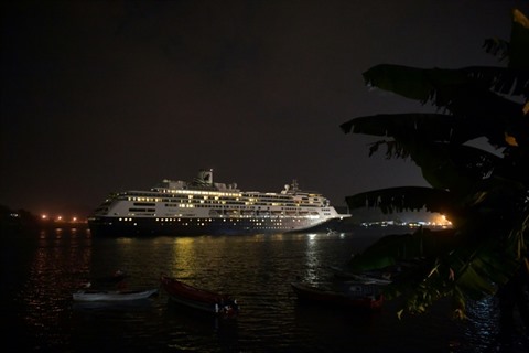 | Le paquebot Zaandam sur le canal de Panama le 29 mars. |