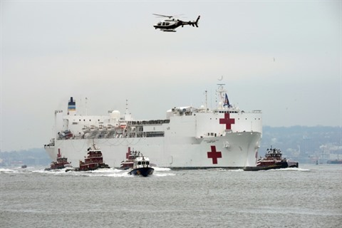 Symbole des efforts entrepris, un navire-hôpital de 1.000 lits est arrivé à New York pour désengorger les hôpitaux de la mégalopole, où des hôpitaux provisoires ont aussi été érigés, dans un centre de conférences ou sous des tentes montées en plein Central Park.