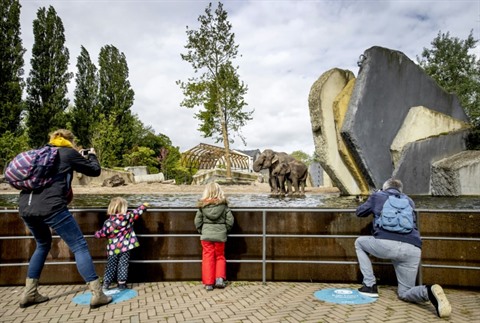 | Respect des distanciations pour des visiteurs dans un zoo à Amsterdam, le 13 mai. |
