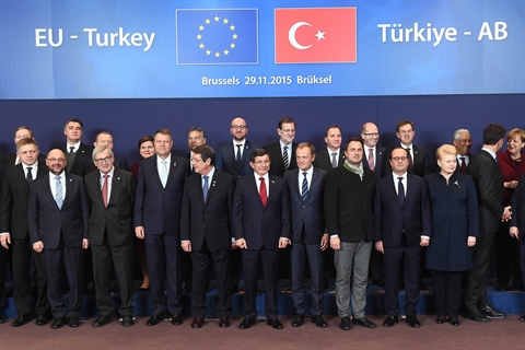 | Les participants au sommet UE-Turquie, le 29 novembre à Bruxelles. |