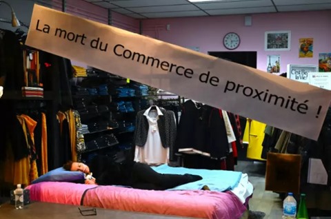 | Une commerçante en grève de la faim dans sa boutique de vêtements à Blotzheim, dans l'Est de la France, le 31 octobre , contre la fermeture des petits commerces. |