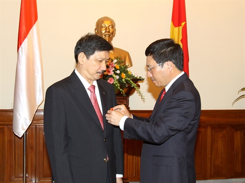 Pham Binh Minh a rendu hommage à l'apport conséquent du diplomate indonésien au développement et à l'approfondissement des relations entre les deux pays en tous domaines, notamment en politique et en défense, en économie, dans l'éducation, la culture...
