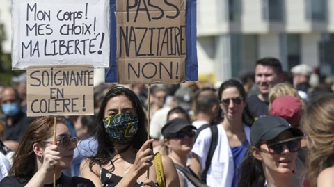 | Manifestation contre l'extension du pass sanitaire, le 17 juillet. |