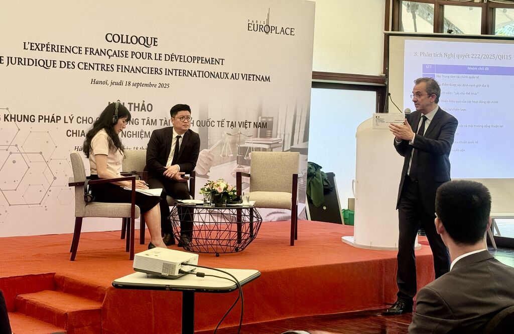 | Olivier Vigna, délégué général adjoint de Paris Europlace, lors d’un colloque sur l’expérience française pour le développement du cadre juridique des Centres financiers au Vietnam tenu le 18 septembre à Hanoï. |