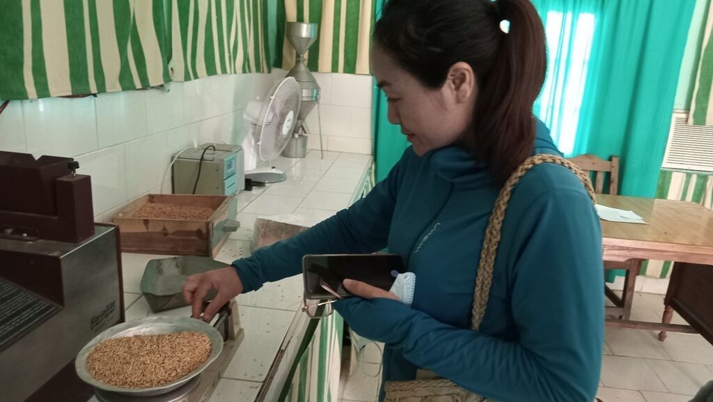 | L’agronome vietnamienne Trân Thi Tham vérifie la qualité des semences de riz à Cuba. |