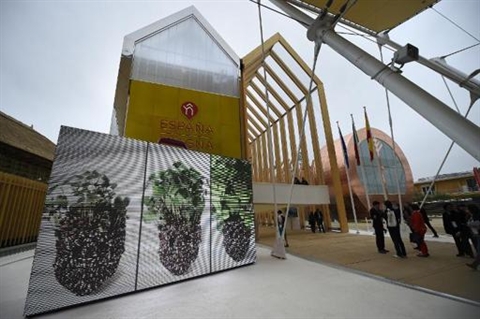 | Un des stands de l'Espagne, de l'Exposition universelle à Milan, le 1er mai. |