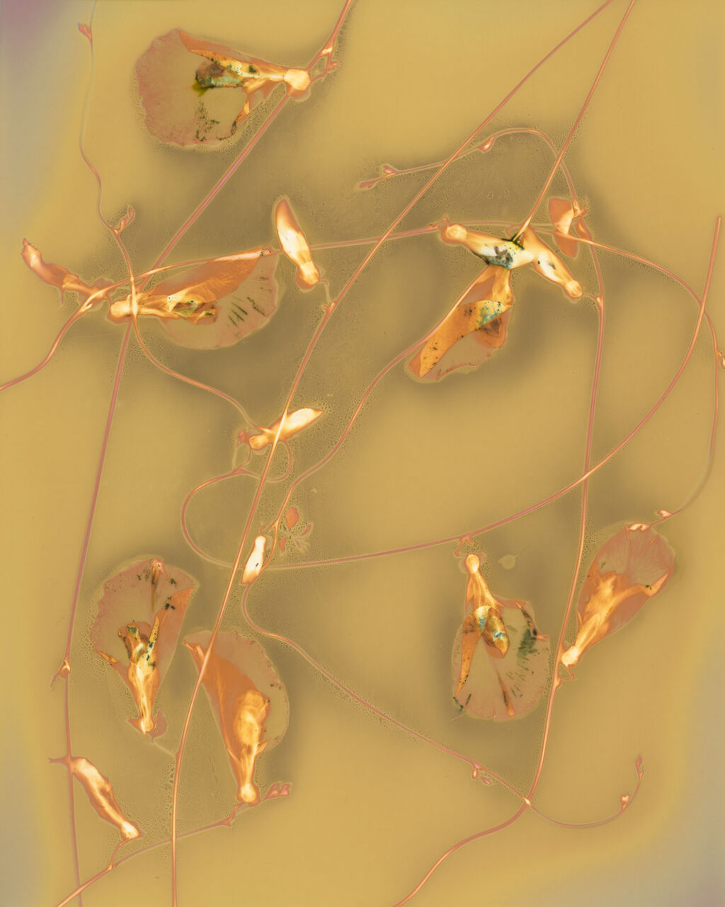 Pour cette exposition, Pham Tuân Ngoc a utilisé l’impression Lumen. Cette technique permet de réaliser des photographies sans appareil photo, à l’aide des rayons UV du soleil. Les matériaux naturels comme les fleurs, les feuilles sont immortalisés et deviennent des œuvres d’art. En chambre noire, ces matériaux naturels, après la cueillette, sont posés sur du papier photographique, puis, cette création est exposée au soleil. Et le résultat ? C’est l’empreinte des arrangements végétaux laissée sur papier. Enfin, il suffit de scanner les impressions pour voir l’œuvre finie.