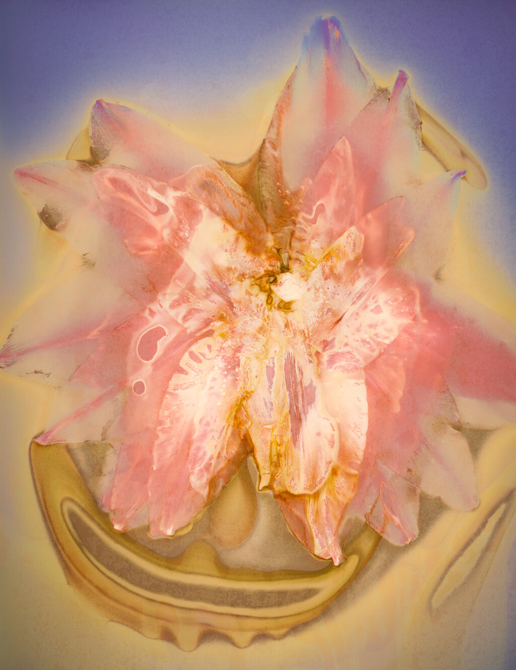 L’image des fleurs Chloris est la source d’inspiration de l’artiste dans cette exposition. Chloris est considéré comme la déesse des fleurs dans la mythologie grecque. Sans l’utilisation des appareils photos, les œuvres sont le fruit du processus d’interaction des vraies fleurs sur du papier couvert de chlorure d’argent.