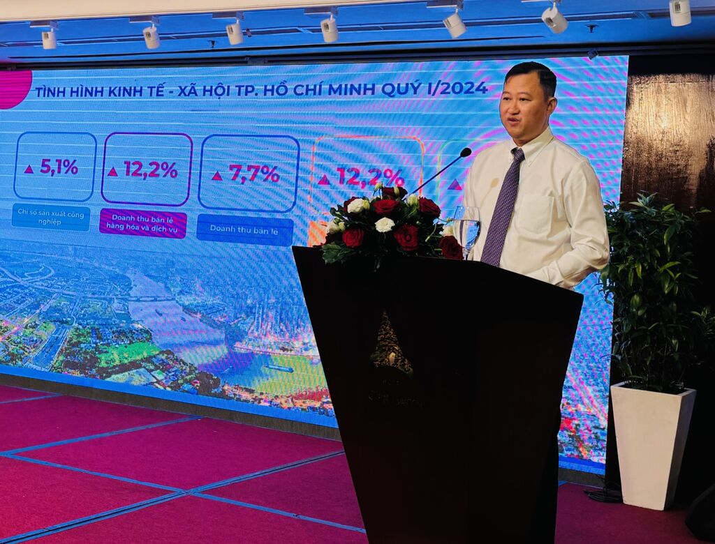 | Le directeur du Centre municipal de promotion du commerce et des investissements (ITPC), Trân Phu Lu, s’exprime lors de la conférence de presse pour présenter HCMC FOODEX 2024, tenue le 16 avril à la mégapole du Sud. |