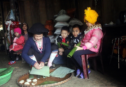 | Des Dao au pantalon serré, domiciliés dans la commune de Thanh Phat, province de Tuyên Quang, préparent des offrandes pour présenter à l’autel des ancêtres. |