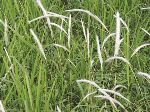 L’herbe à paillote est une herbe dure, à tige dressée, robuste, presque poilue, aux feuilles linéaires, étroites, aux inflorescences en panicules spiciformes, denses, blanches, soyeuses et cylindriques.