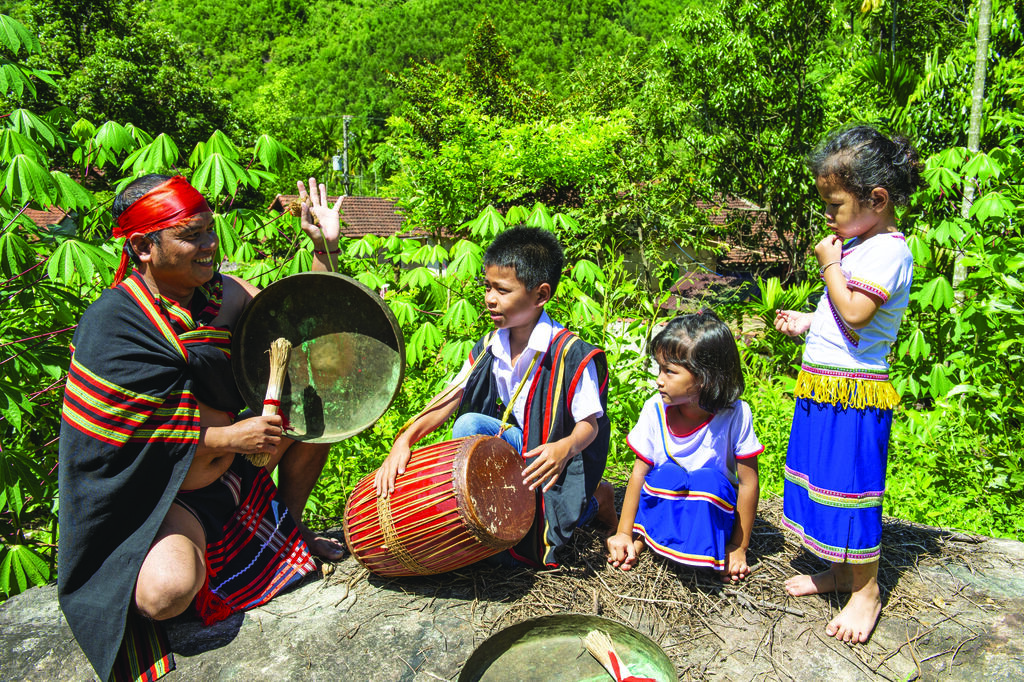Dans le cadre du projet “Préserver et promouvoir les héritages culturels de l’ethnie Cor”, les autorités locales et les habitants ont réussi à conserver, restaurer et mettre en valeur les traditions culturelles de cette ethnie, notamment la transmission de la fabrication et de la pratique d’instruments de musique dont les gongs, mais aussi l’instauration des fêtes traditionnelles et du tissage de brocatelles.