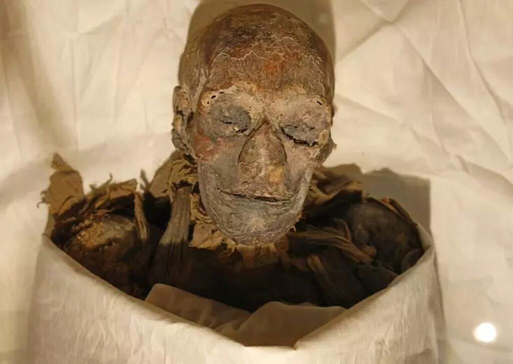| Les restes momifiés de la reine Hatchepsout, célèbre femme pharaon de l'Égypte ancienne, au musée du Caire en 2007. |