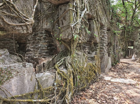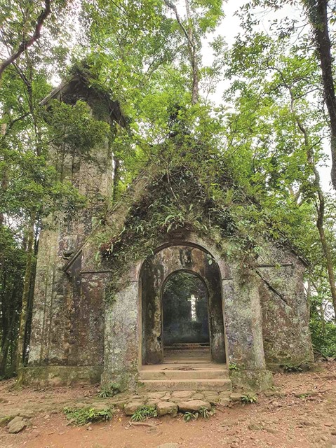 | Des ruines d’un ouvrage construit par les Français, à 600 m d’altitude sur le mont Ba Vi. |