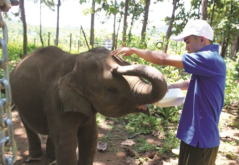 Après consultation d’experts, le CPE de Dak Lak a décidé de remettre le bébé en forêt, en le relâchant près de son groupe lorsque celui-ci viendrait boire de l’eau. "Nous avons passé des nuits blanches à attendre l’arrivée de la troupe d’éléphants sauvages. Quatre fois, en vain. La dernière fois, elle est venue. Nous nous sommes approchés avec Gold, mais celui-ci, au lieu de rejoindre ses congénères, est retourné vers nous", poursuit Phan Phu. Un an et demi est passé. Gold s’est bien accoutumé à sa captivité.