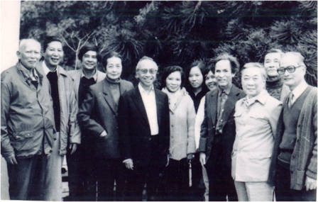 | Le professeur Pham Huy Thông (au centre) et ses confrères de l’École normale supérieure de Hanoi dont il a été le directeur de 1956 à 1966. |