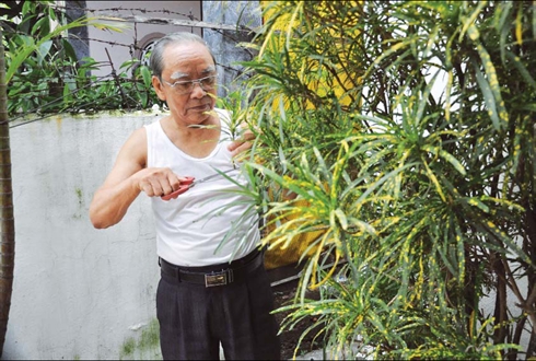 | Trân Công Thang dans son jardin. |