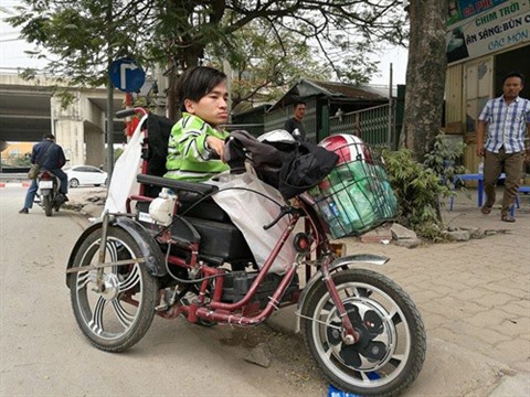 | Son lourd handicap n’empêche pas Trân Van Hà de travailler en tant que vendeur ambulant. |