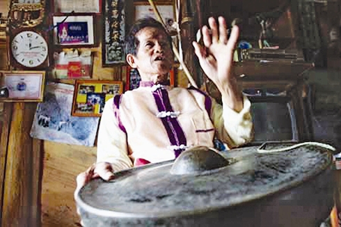 | Le septuagénaire Nguyên Van Thuc et son chiêng cai. |
