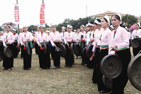 | Représentation des gongs des filles de l’ethnie Muong à la commune de Phong Phu, district de Tân Lac, province de Hoà Binh. Trong Duc/VNA/CVN |