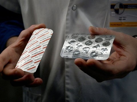 | Un professionnel de santé montre des plaquettes de Nivaquine et de Plaquenil, des médicaments contenant de l'hydroxychloroquine, le 26 février à Marseille. |