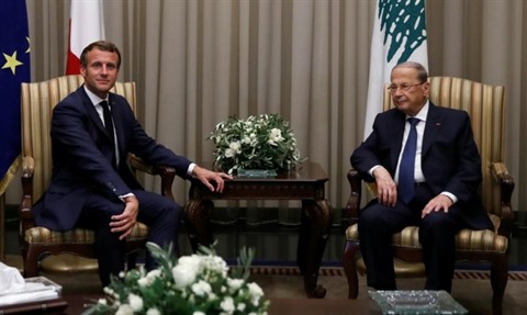 | Le président français Emmanuel Macron (gauche) et son homologue libanais Michel Aoun, à l'aéroport international de Beyrouth, le 31 août. |