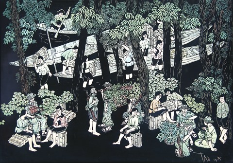 | La peinture sur laque +Mère de résistance+ de Hoàng Trâm. |