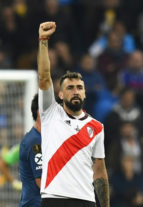 | Le joueur de River Plate Lucas Pratto buteur lors de la victoire sur Boca Juniors à Madrid en finale retour de la Copa Libertadores le 9 décembre. |