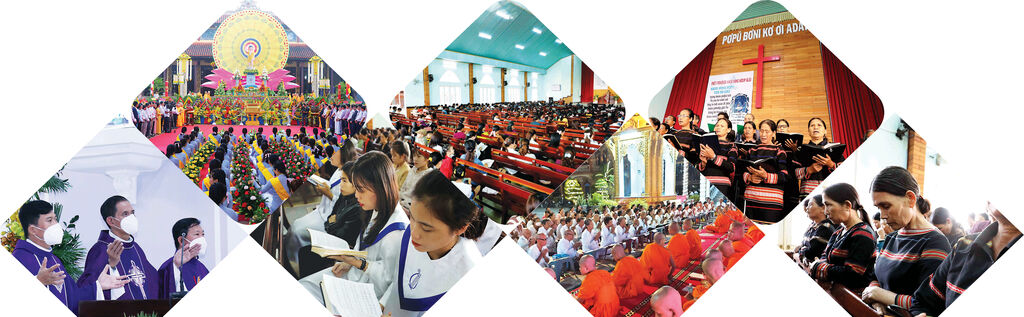 Le pays compte 43 organisations de 16 religions reconnues par l’État : bouddhisme, catholicisme, protestantisme, caodaïsme, bouddhisme Hoà Hao, islam, bahaïsme, “Tịnh độ Cư sĩ Phật hội” (Association du bouddhisme de la Terre Pure), “Cơ đốc Phục lâm” (Église adventiste du septième jour), bouddhisme “Tứ Ân Hiếu Nghĩa” (Reconnaissance), “Minh Sư đạo”, “Minh lý đạo - Tam Tông Miếu”, brahmanisme, mormonisme, bouddhisme “Hiếu Nghĩa Tà Lơn”, “Bửu Sơn Kỳ Hương”.