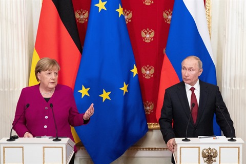| La chancelière allemande Angela Merkel et le président russe Vladimir Poutine. |