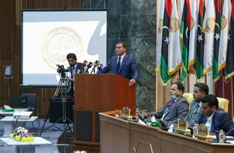 Son gouvernement d'unité nationale a obtenu mercredi 16 mars un vote de confiance "historique" des députés. Il remplace aussi bien le Gouvernement d'union nationale (GNA) de Fayez al-Sarraj, installé en 2016 dans l'Ouest et reconnu par l'ONU, que le cabinet parallèle d'Abdallah al-Theni -non reconnu par la communauté internationale-, basé dans la Cyrénaïque, région contrôlée de facto par les forces du maréchal Khalifa Haftar.