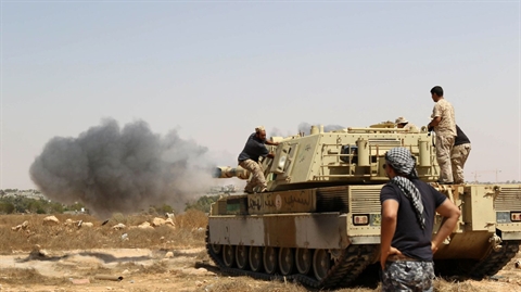 | Les forces gouvernementales libyennes progressent vers la ville de Syrte, le 10 juin 2016 pour y chasser les jihadistes de l'EI. |