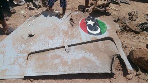 | Un débris d'avion paramilitaire libyen après son crash à Benghazi lors de combats avec des groupes islamistes le 29 juillet. Photo : AFP/VNA/CVN |